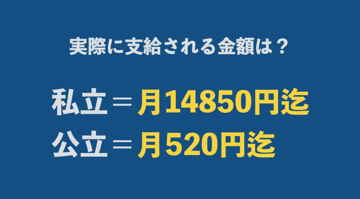 意外と知られていませんが、支給額は世帯年収の違いだけではなく、通う学校の種類によっても変わります。