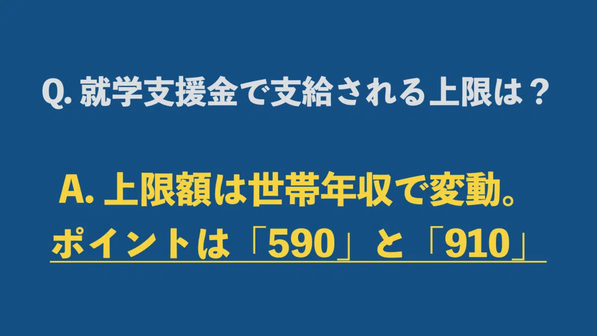 まず、この制度で支給される上限額は世帯の年収によって大きく変わります。注目するポイントは「590」と「910」です。