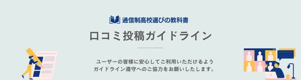 当サイトは「通信制高校・サポート校を探している生徒(とその両親)にとって参考になるかどうか」を掲載基準としています。そのため、皆様から寄せられた口コミを満足度に左右されることなく掲載しています。