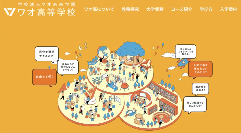 ワオ高等学校は、年2回行われるスクーリングを除き、ほぼ全ての授業をオンラインで受けられる通信制高校です。