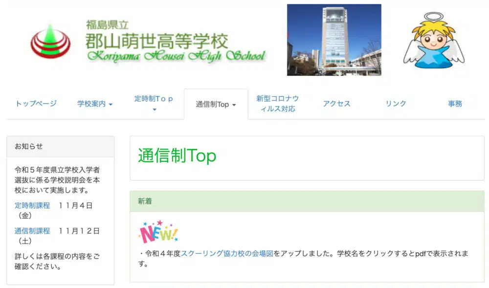 郡山萌世高等学校は福島で唯一の公立の定時制と通信制学校です。必要な学費は年間3万円程度で安いです。制服もなく、普段着で通学することができます。学費がそれほど掛からない割にはビル内に本校があって駅からも近く、通学もしやすい環境です。