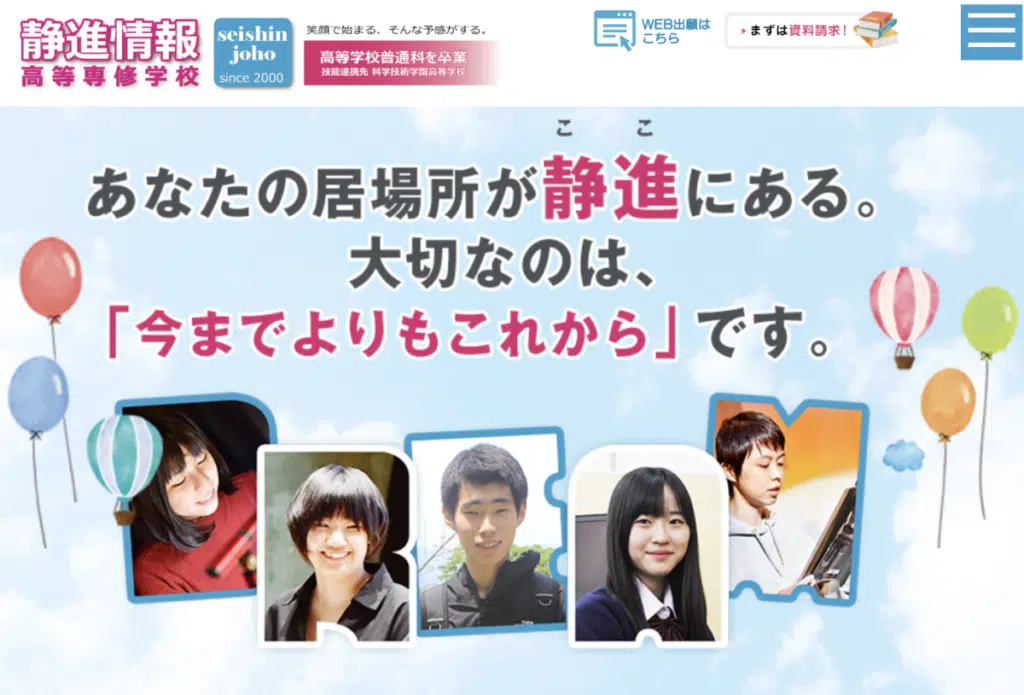 静進情報高等専修学校は、不登校生や集団学習が苦手な生徒を対象とした通信制高校です。