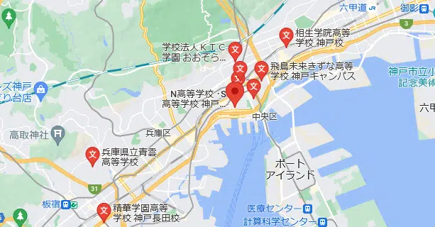 | 飛鳥未来きずな高等学校 | 神戸キャンパス | 神戸市中央区御幸通3-2-22 |