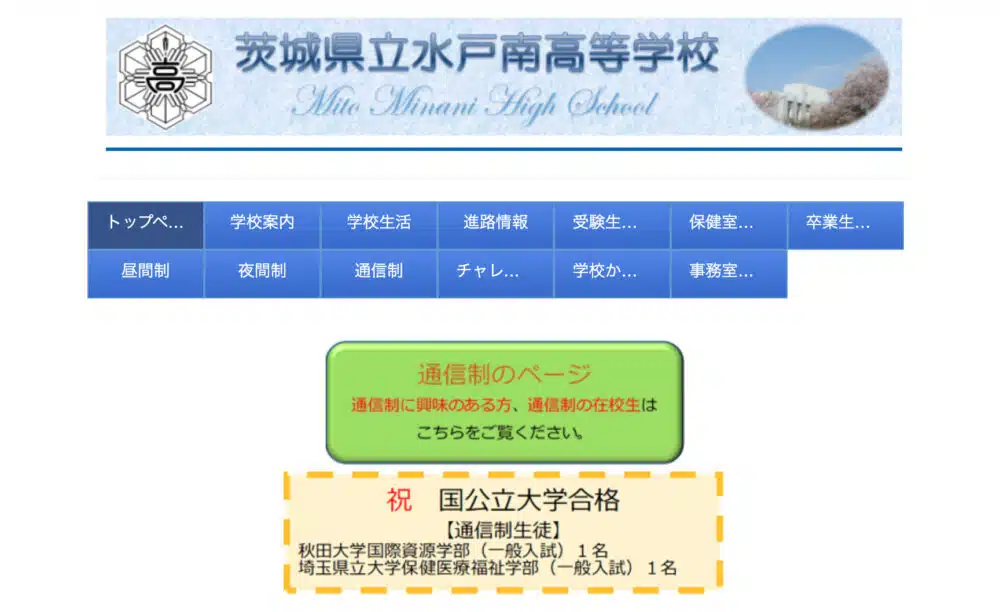 茨城県において、公立の通信制高校として用意されているのは1校で、その学校は県庁所在地でもある水戸市にある水戸南高等学校です。