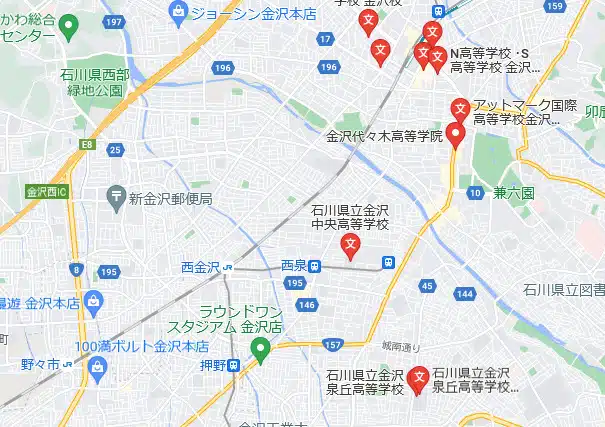 | NHK学園高等学校 | 金沢泉丘高等学校 | 金沢市泉野出町3-10-10 |