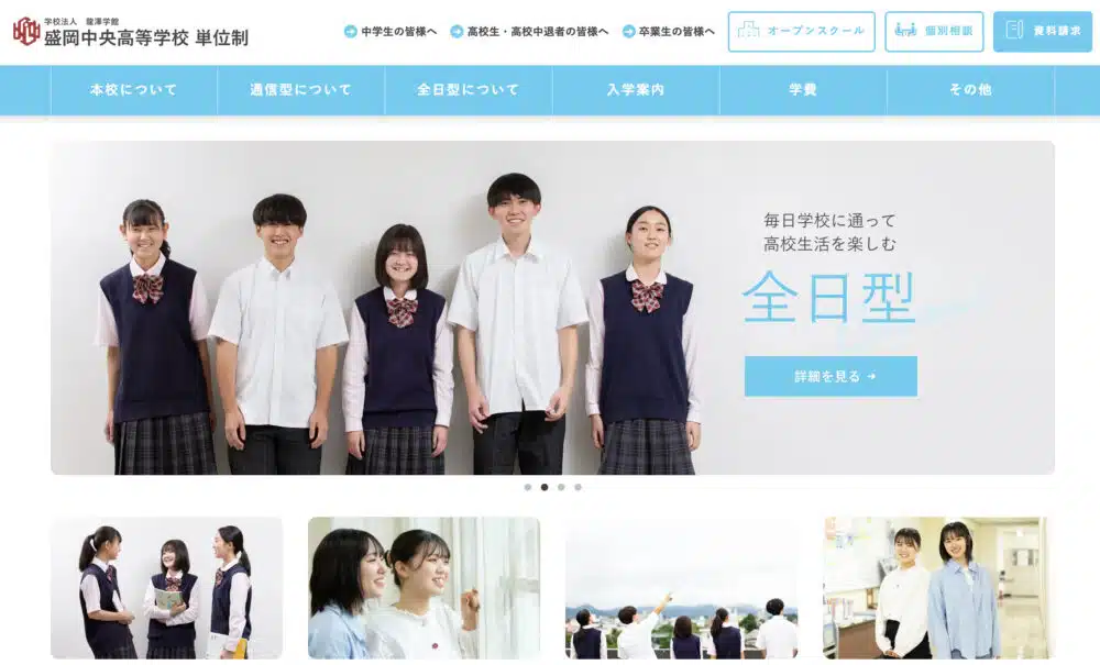 盛岡中央高等学校は盛岡市にある通信制高校です。単位制通信制高校のため、学年や留年という考え方がありません。1年間で取得した単位を積み上げ、3年間で74単位を取得します。