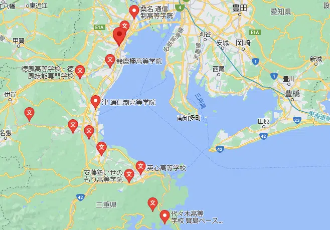| 明蓬館高等学校 | 鈴鹿欅高等学院 | 鈴鹿市南玉垣町3053番地8 |