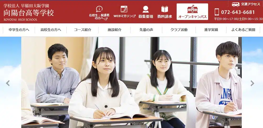向陽台高等学校は大阪府茨木市に拠点を構える通信制高校です。豊かな自然に恵まれた北摂の国際文化公園都市に位置しており、快適に学習するための自習室やパソコン教室などの設備が整っています。