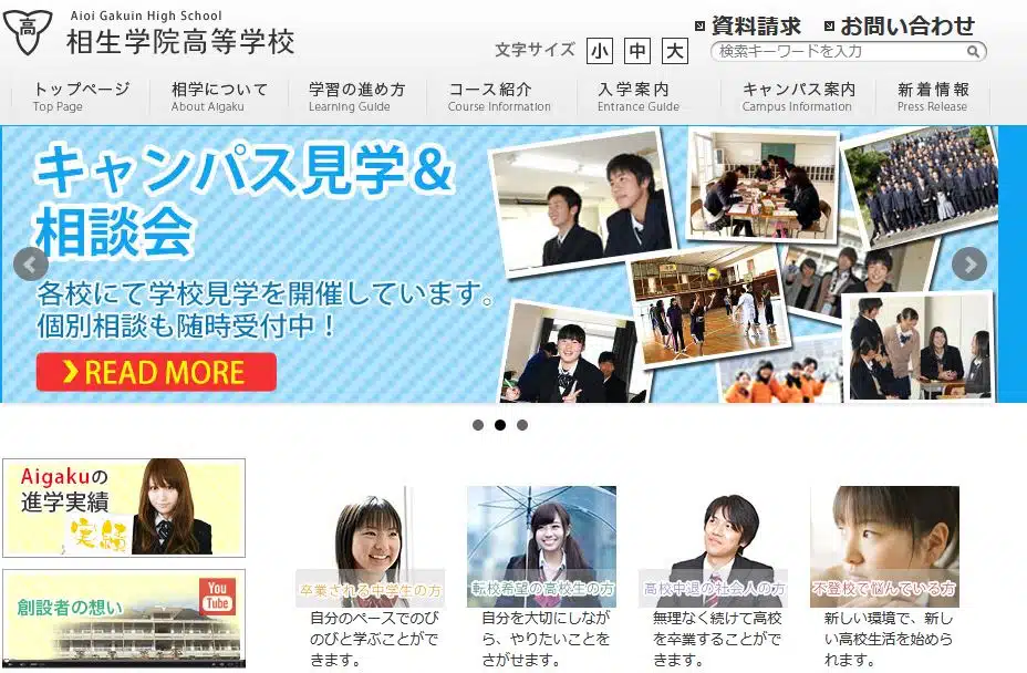 相生学院高等学校は、15のコースがあり、コースによっては高卒の資格と共に将来的に役立つ資格も取得可能です。進学コースもあるので、大学を目指したい人にもおすすめです。中学時代、不登校に悩んでいたという人向けの、不登校支援・サポートコースがあり、スクールカウンセラーも常駐しています。ですから、高校進学を機に少しずつ学校に通って勉強をしたいという人にも人気があります。