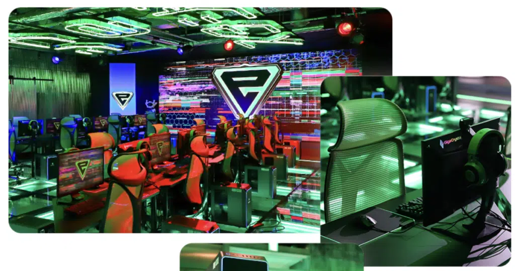 PCスペースには、ハイスペックなゲーミングPCが完備されています。大型モニターや高性能なパーツを使用しており、プロ選手も納得の環境が整っています。