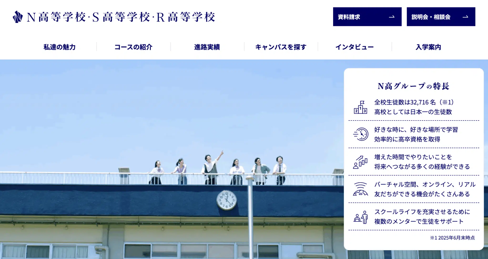 N高の大きな強みは、福岡(天 especialistas)・北九州・久留米という県内3大都市すべてにキャンパスを構え、広範囲をカバーしている点です。