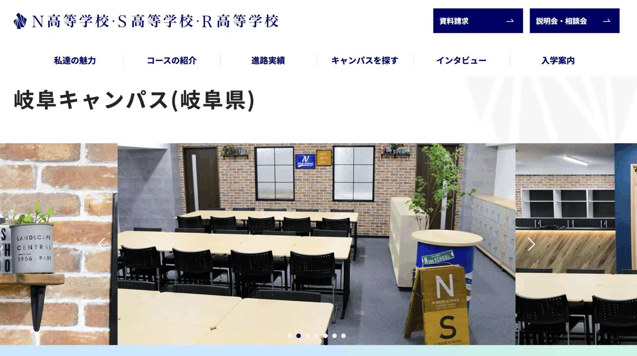 岐阜には、岐阜駅近くにキャンパスがあります。詳しい学費や募集要項はN高等学校の資料を請求してご確認ください。
