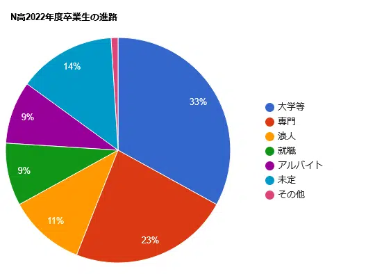 N高等学校は通信制高校ながら進学実績が豊富で、東京大学や京都大学などの難関国公立大学への合格者もいます。また、多くの生徒が私立大学や専門学校へ進学しており、進路サポート体制も整っています。