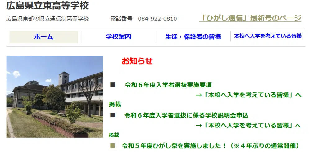 広島県立東高等学校は、広島県東部にある福山市の公立高校です。広島県東部では唯一の公立の通信制高校になりす。