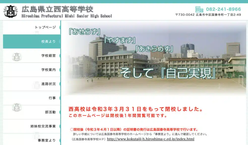 | 学校URL | https://www.hiroshimanishi-h.hiroshima-c.ed.jp/ |
