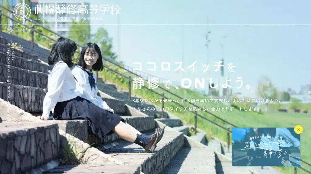 札幌静修高等学校通信制過程は、学校の理念である「ココロスイッチ」を見つけてもらいたいという想いから、3つのコース、さまざまな学習スタイルが特徴です。「ココロスイッチ」とは、心の偏差値Sランクを目指し、集中して取り組めるもの、夢中になれるものとの出会いのことです。
