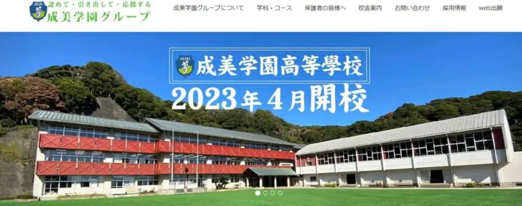 インターネットで成美学園で検索すると成美学園はサポート校ではなく、高等学校である情報も見つかります。一体どういうことかというと「成美学園高等部」はサポート校で「成美学園高等学校」は2023年4月に開校された高等学校です。名前が似ていてややこしいですが、このように区別されています。