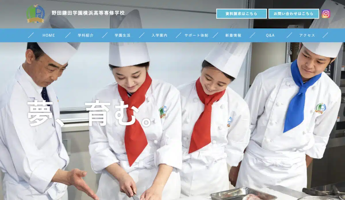野田鎌田学園横浜高等専修学校には調理高等科と調理高等科のスイーツ・パンコース、情報メディア高等科の3つのコースがあります。