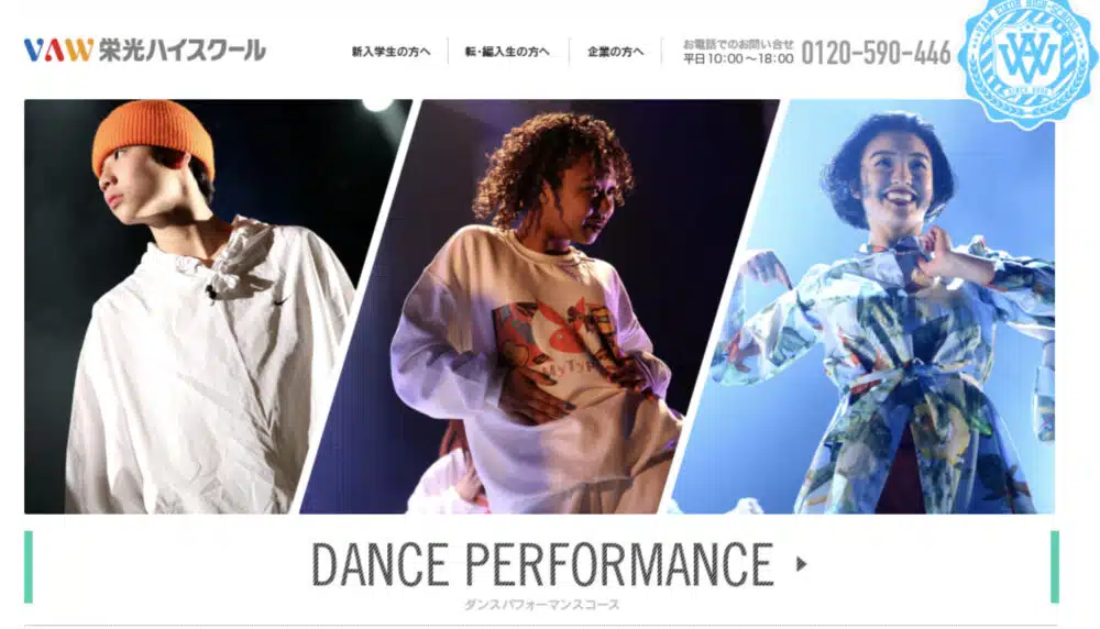 VAW栄光ハイスクールはまさにダンスの専門学校のような学校で、コースはダンスパフォーマンスコースのみとなっています。