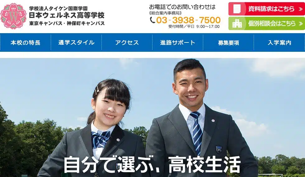 学校法人タイケン学園グループの運営する「日本ウェルネス高等学校」。